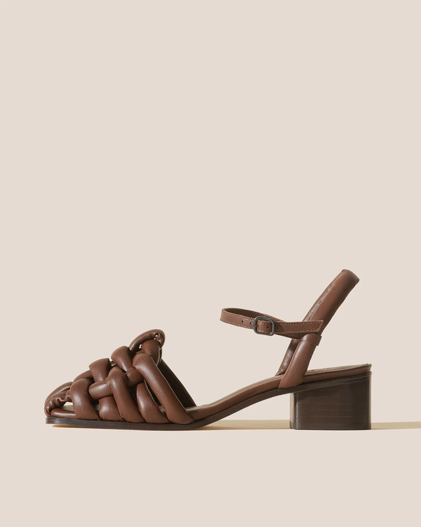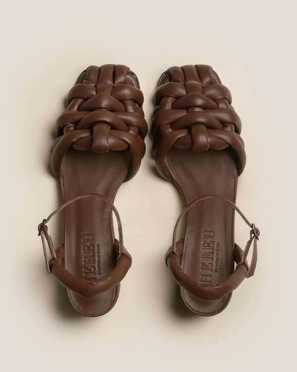Fineste sandaler, flettet i blødt polstret lammeskind.
