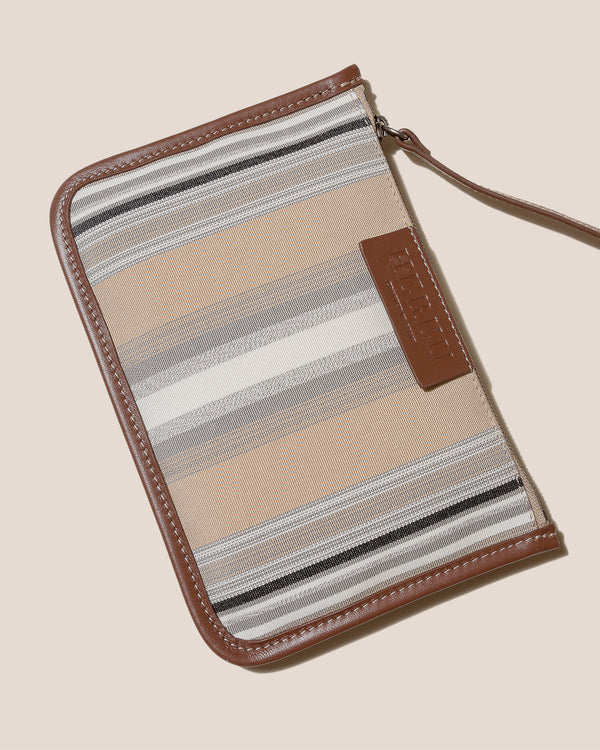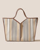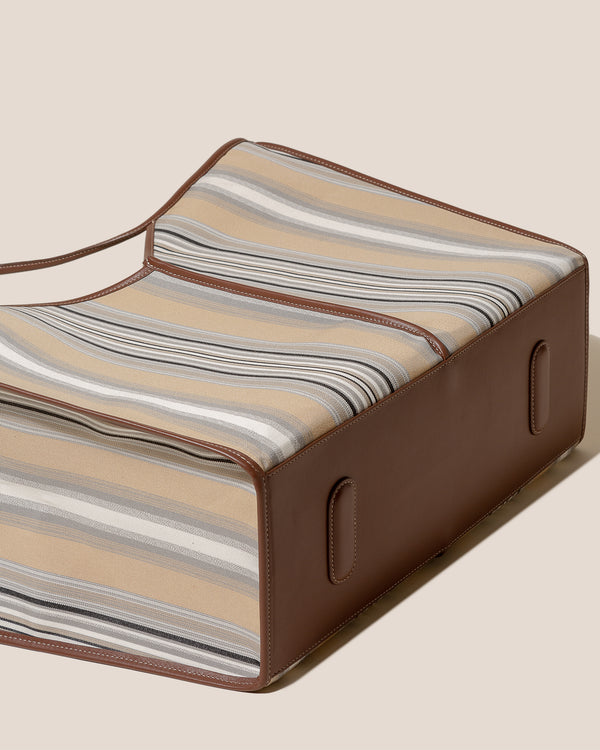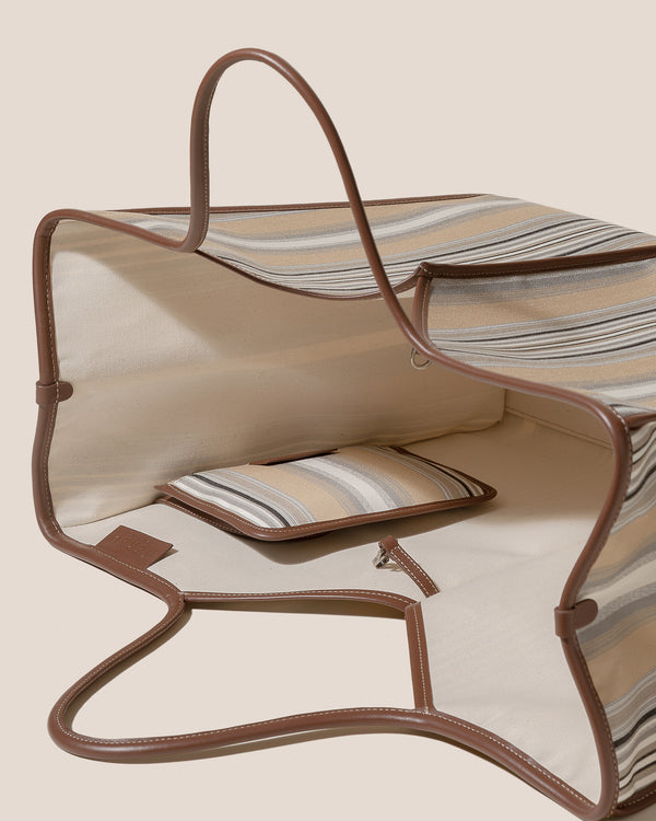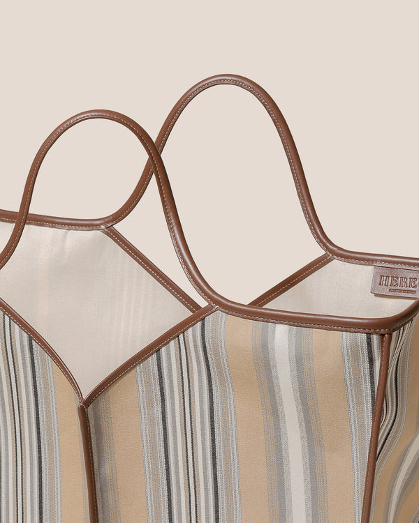 Materialer: stribet kanvas og læder bund og kanter/stropper
