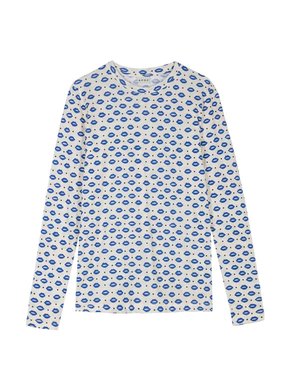Super fin langærmet t-shirt fra APOF- apiece of favorite i deres eget signatur print "Blue Kiss"