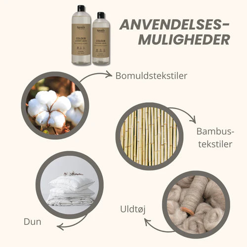 Byoms vaskemiddel til farvet tøj kan bruges til både håndvask samt til maskinvask ved forskellige temperaturer fra 30 grader.
