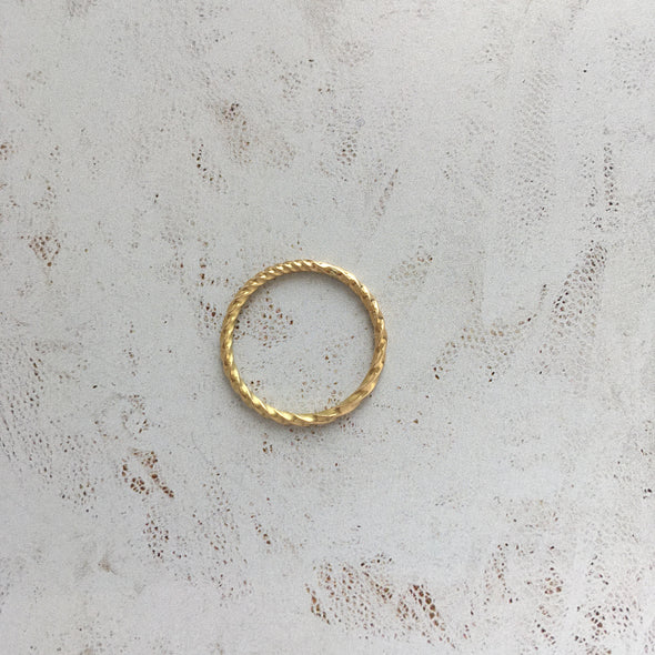 Ringen er i massivt guld og snoet i hånden, hvilket giver et smukt organisk udtryk. Smuk alene eller i kombination med andre ringe.