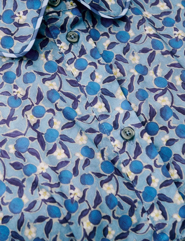 Iben Kjole i Lemon Grove er en nyfortolkning af skjortekjolen med krave, knaplukning foroven og et feminint, voluminøst skørt. Printet er frisk, detaljeret og fuld af liv.