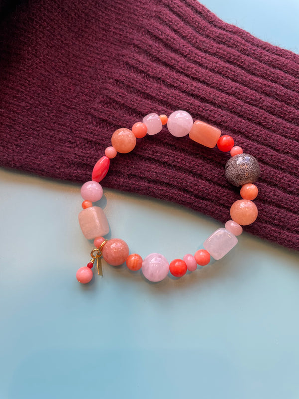 Limkilde armbånd - coral + rosa med enkelt marmoreret perle