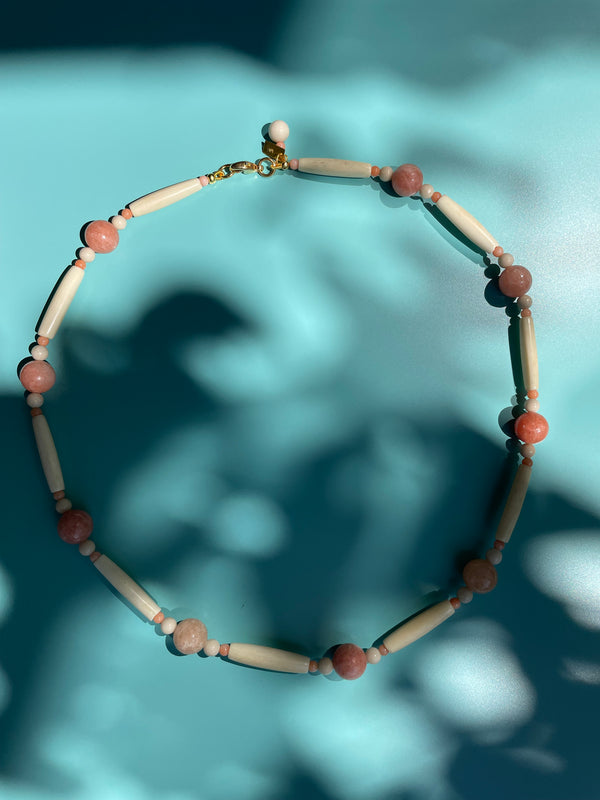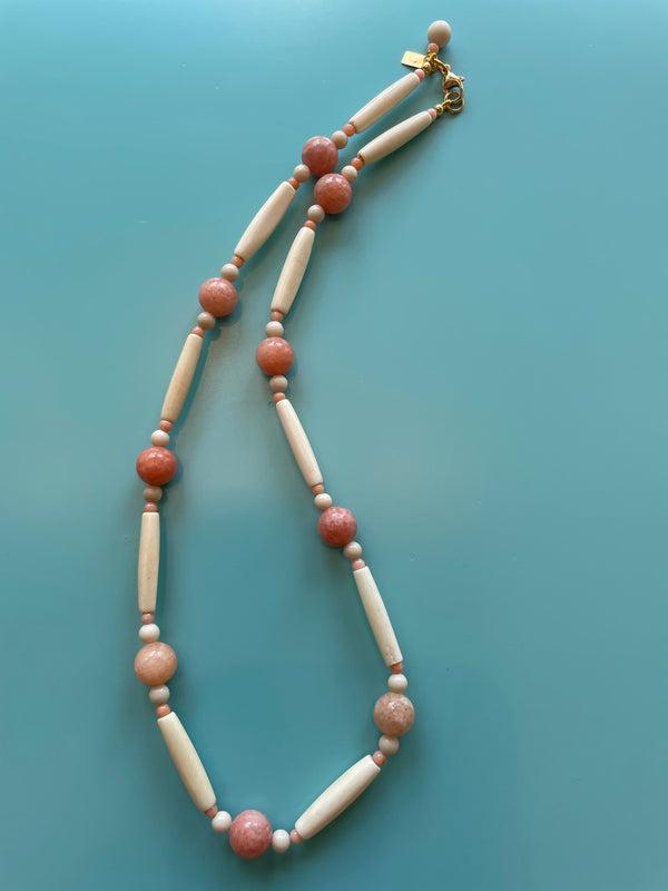 Limkilde halskæde 46 cm - Rosa, coral og creme