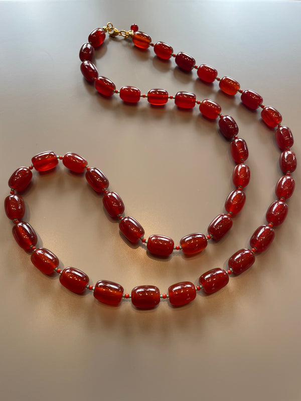 Limkilde halskæde 75 cm - Ovale rustfarvede perler.