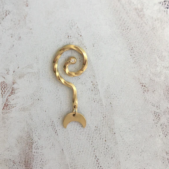 Luna ørering er håndlavet og håndsnoet, hbilket giver et smukt organisk udtryk.Brillanten ligger centreret i øreringen, og månen hænger nederst som en fin afslutning.