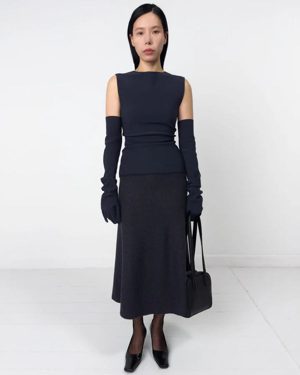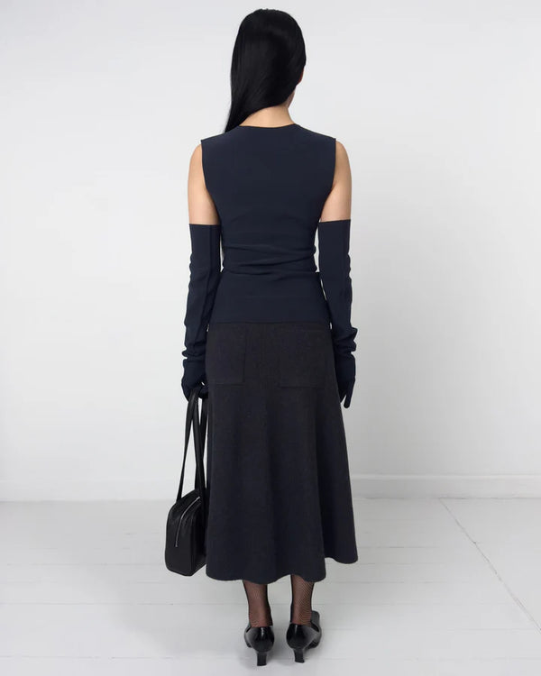 Smuk strik nederdel med elastik i livet og to baglommer.