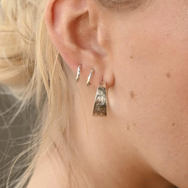 Mini hoops øreringe i banket sølv.