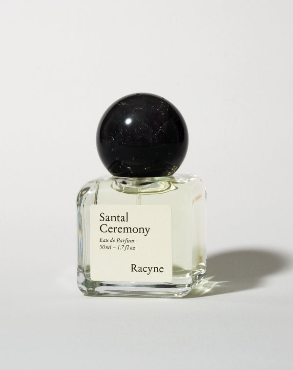 Santal Ceremony celebrates the power of sacred woods. The soft Sandalwood essence dialogues with the spices - Black Pepper, Caraway Seeds, Nutmeg - and Ambrette seed, a unique natural musk. A fresh, spicy bois de peau, aromatic at the top and subtly smoky at the base. Santal Ceremony tells the story of a mystical ceremony from oneself to oneself and accompanies the thoughts that unfold, from earth to heaven.