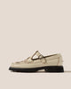 Skindet er håndflettet og syet i en traditionel moccasin konstruktion.