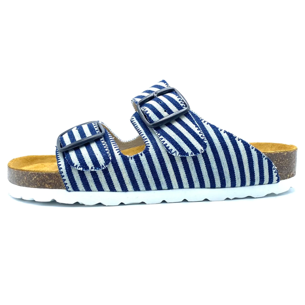 Thora Sandal 2-Buckle - Japanese indigo stripe denim
