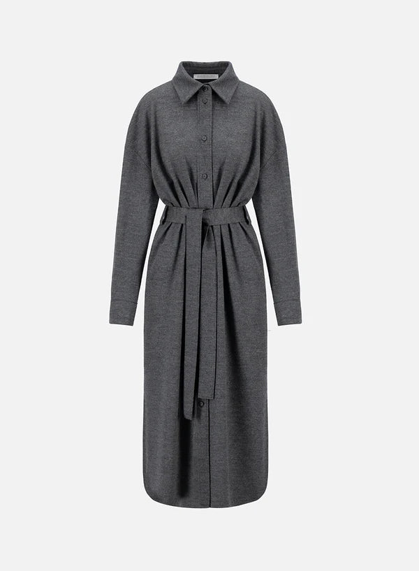 Women oversized long shirt dress superfine merino - Black fra Harris Wharf London.