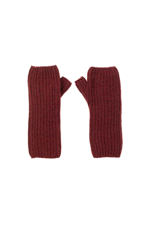 Cashmere Knitted Wrist Warmers - Wine Marl