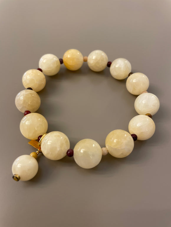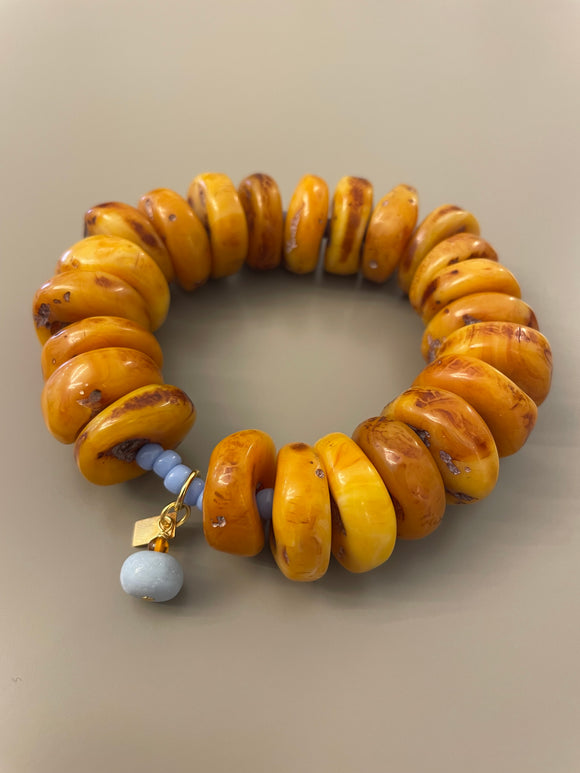 Limkilde armbånd - chunky lyse rav perler + lyseblå perle