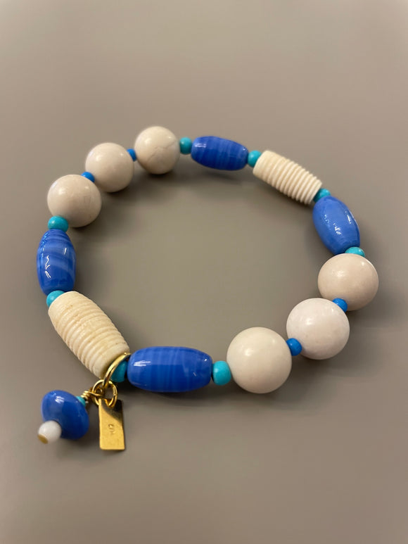 Limkilde armbånd - Røde marmorerede perler + klar blå