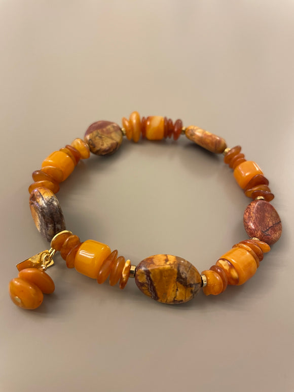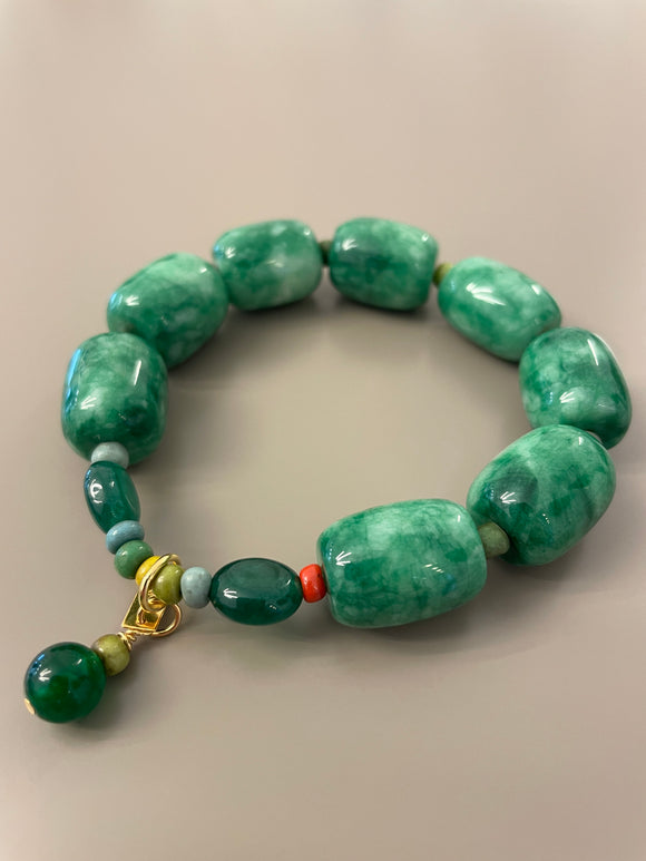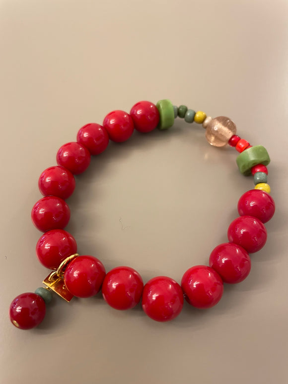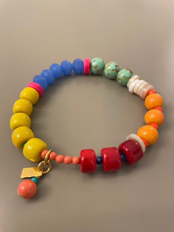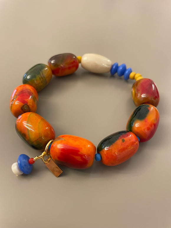 Limkilde armbånd - Store ovale perler i orange/rød/grøn + klar blå