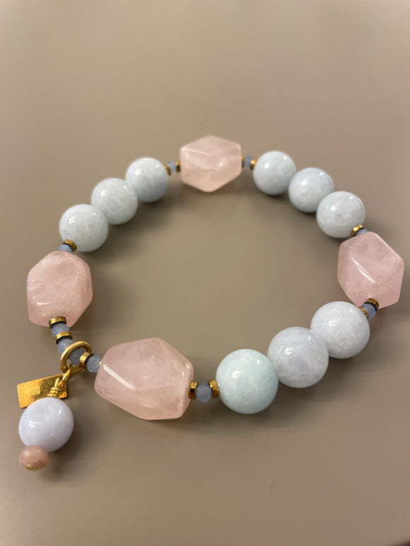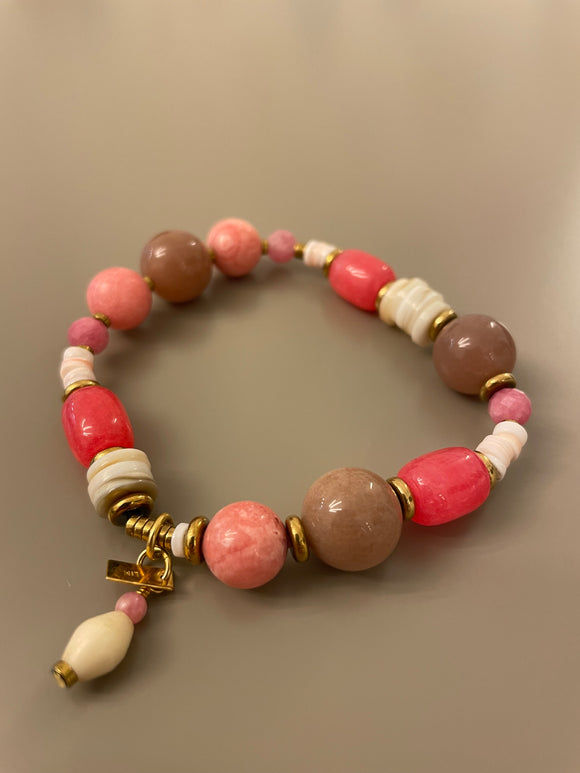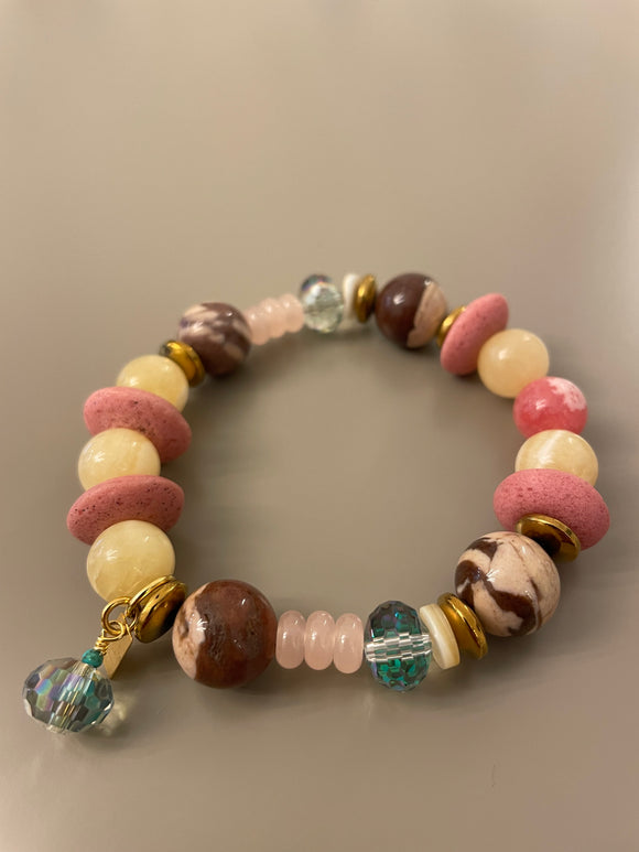 Limkilde armbånd - rosa og lys gul, med marmorerede perler