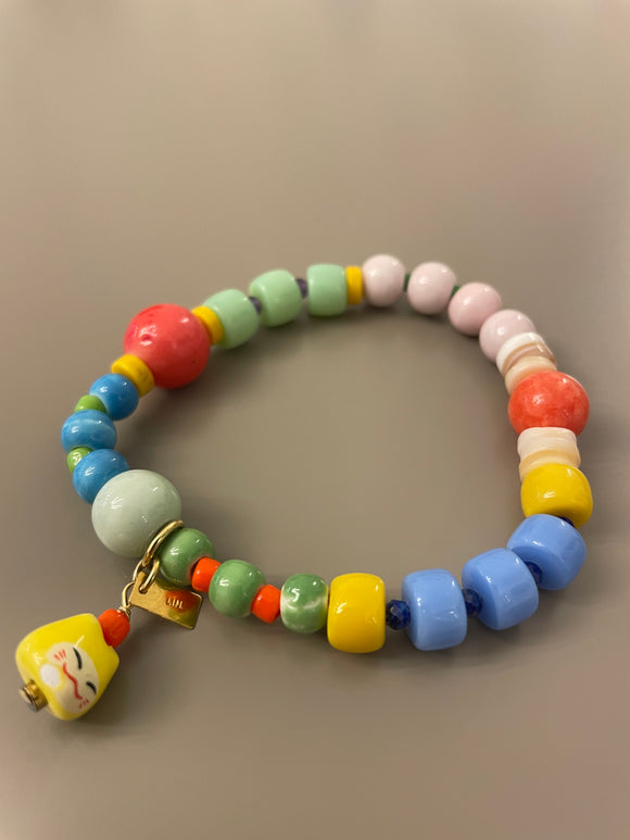 Limkilde armbånd - Multifarvet + gult vedhæng med ansigt