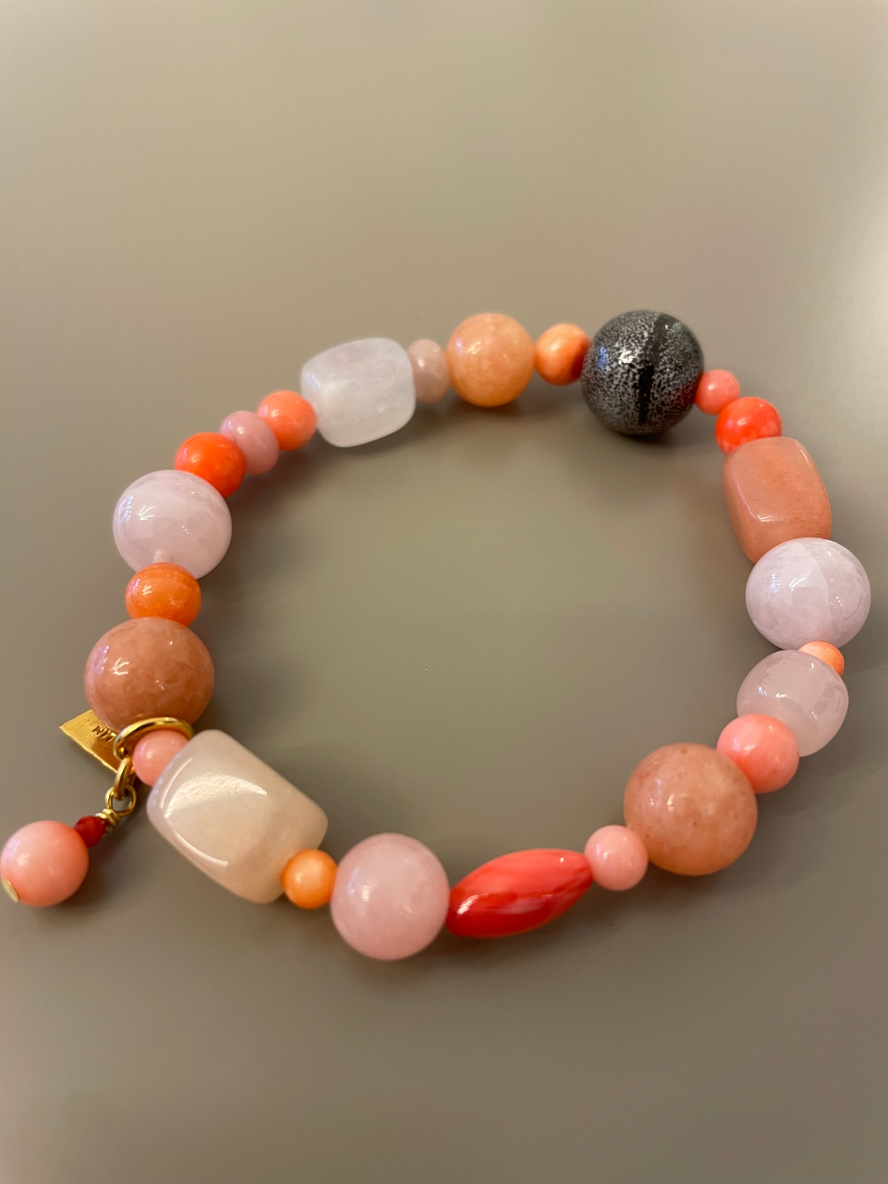 Limkilde armbånd - coral + rosa med enkelt marmoreret perle