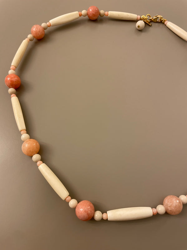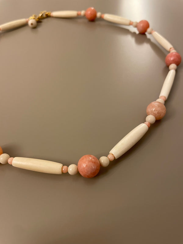 Limkilde halskæde 46 cm - Rosa, coral og creme