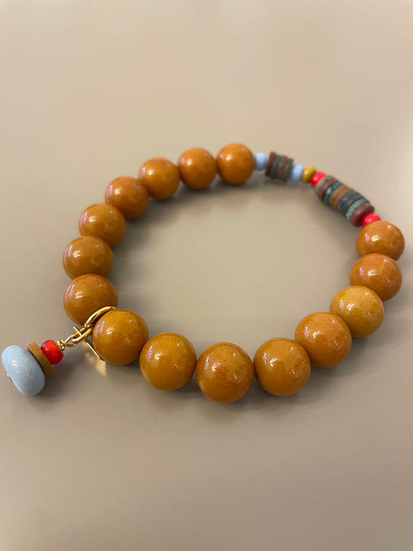 Limkilde armbånd - små lyseblå og blommefarvede perler