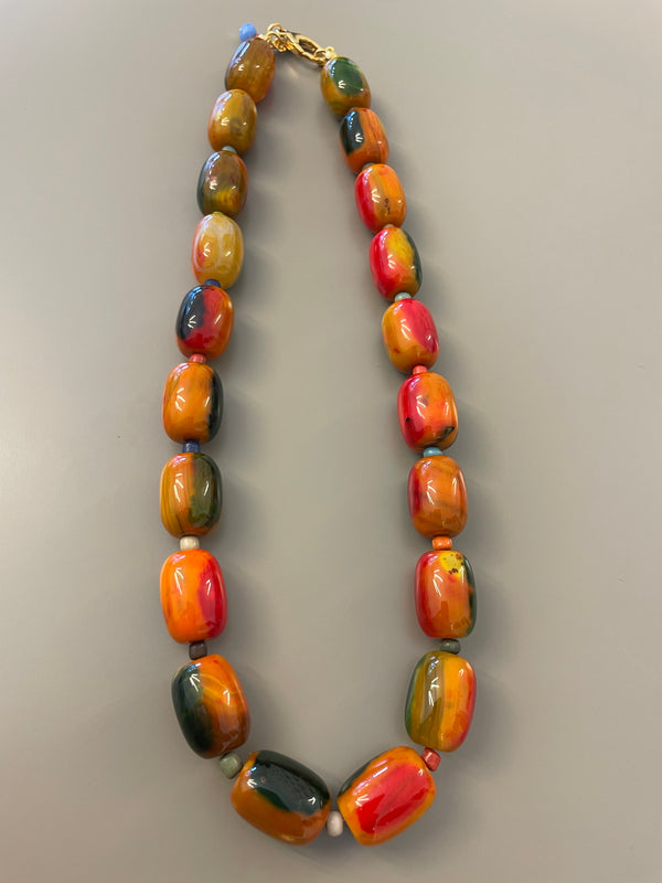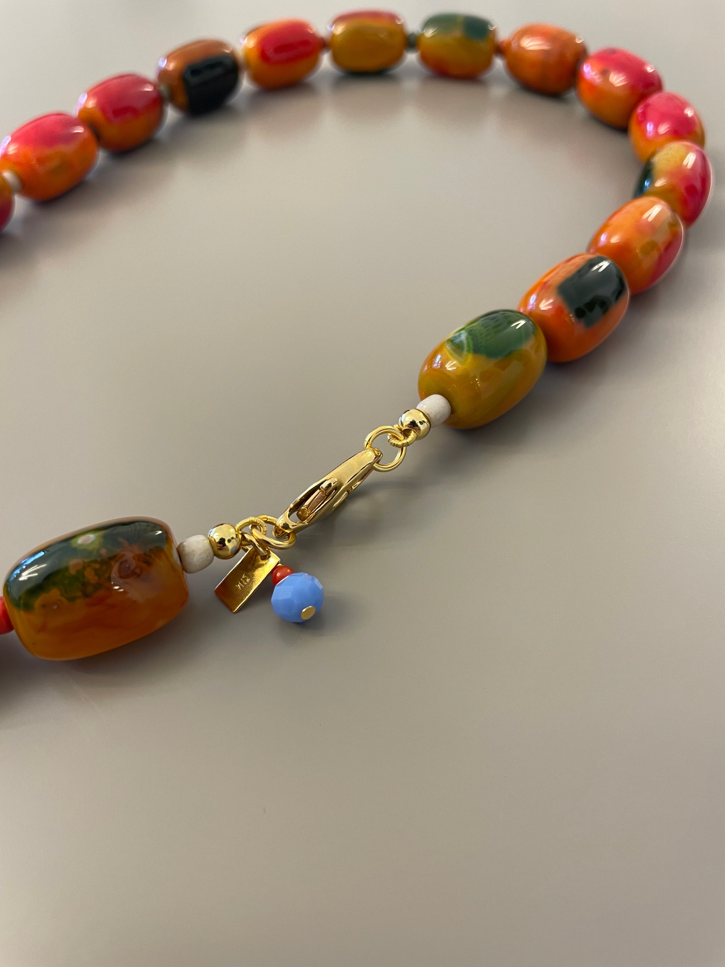 Limkilde halskæde 43 cm - Store ovale perler i rød, grøn og orange