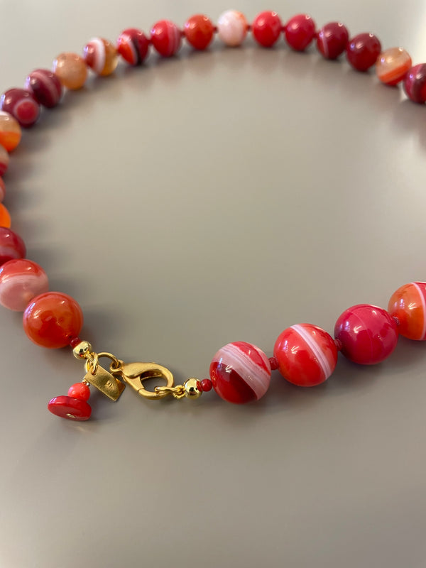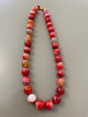 Limkilde halskæde 43 cm - Store runde marmorerede perler i rød/orange