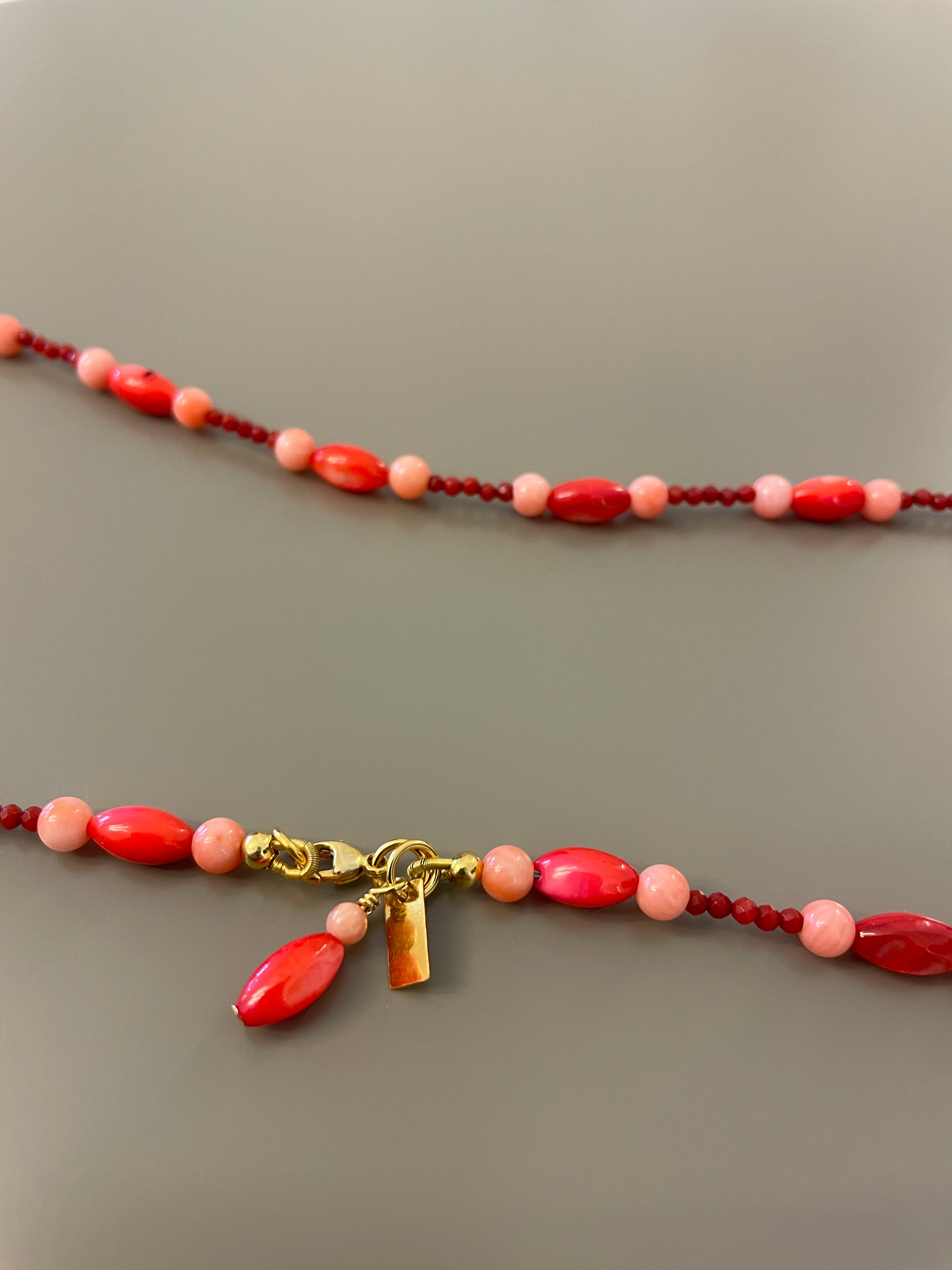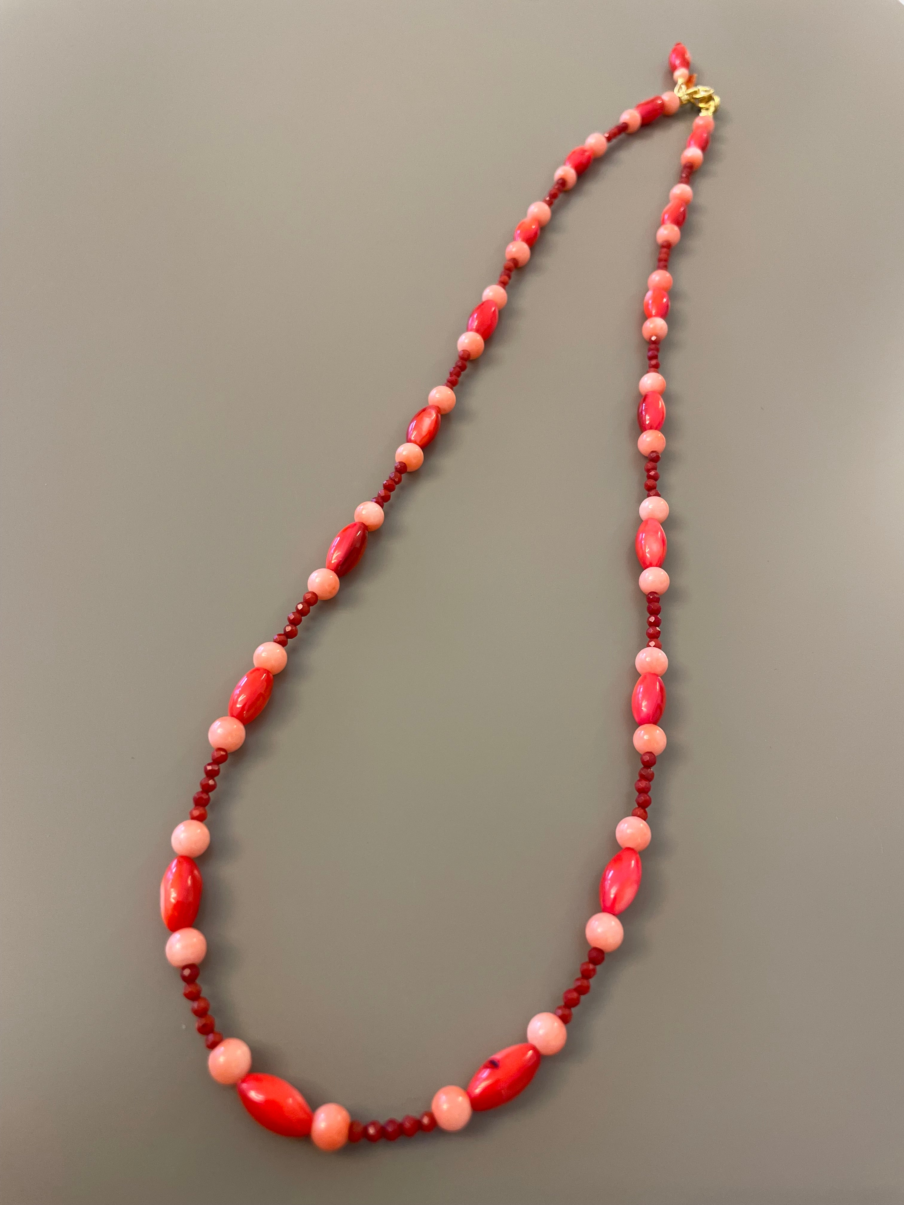 Limkilde halskæde 45 cm - Små perler i lys og mørk coral