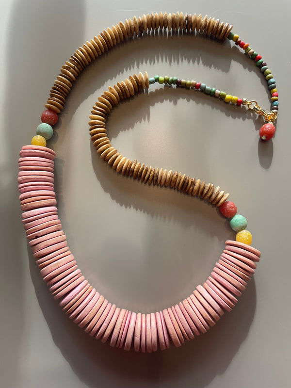 Limkilde halskæde 68 cm - Store flade lyserøde perler