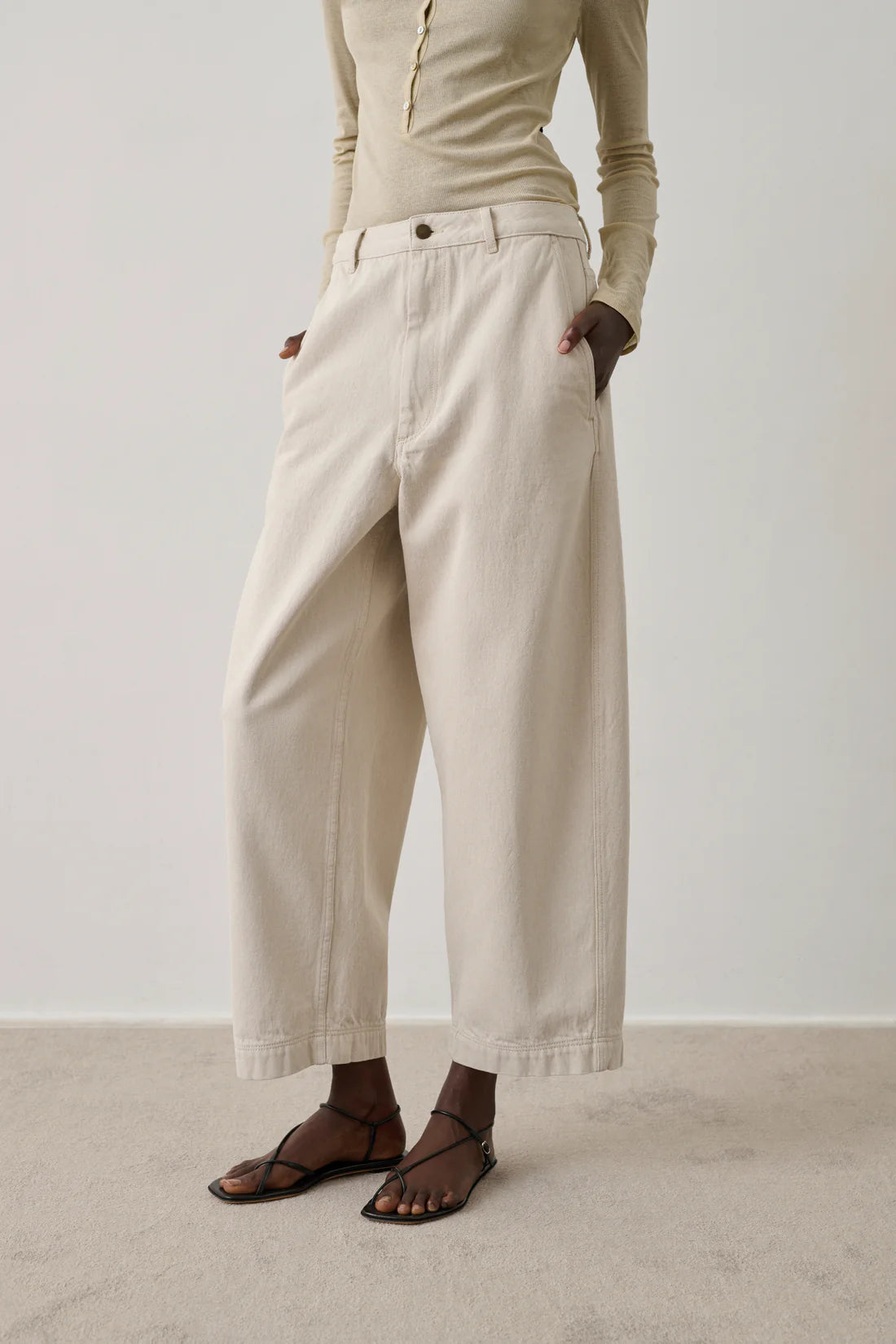 Bukserne har balloon ben og høj talje.