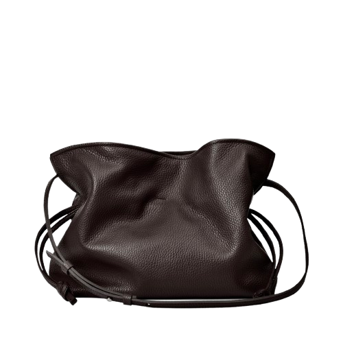 Tasken har et blødt udtryk som understreges af snoretræk lukningen.