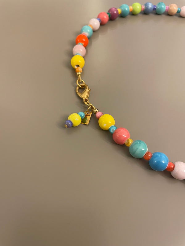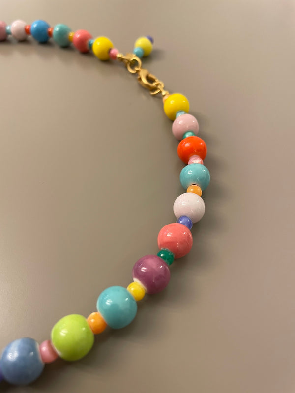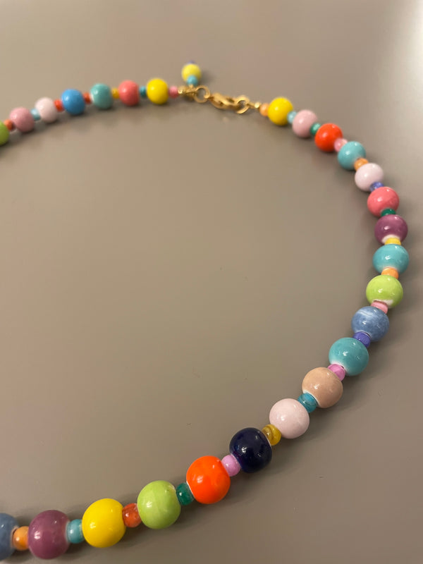 Smukkeste halskæde fra Limkilde med multifarvede perler i keramik.