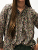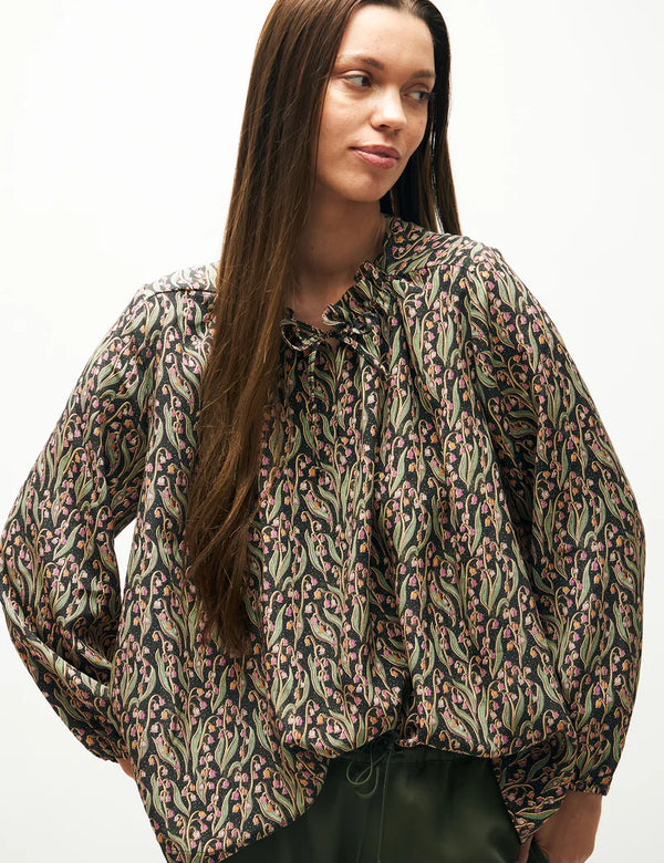 Nini skjorten i 100% silke har et løst og elegant smit, med fint lille bindebånd i halsen.