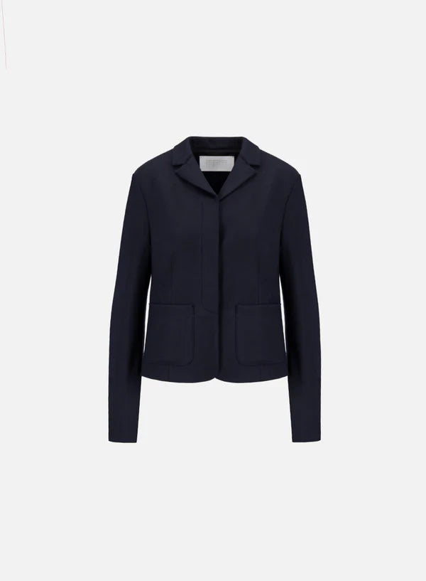 Women fly front cropped jacket superfine merino fra Harris Wharf London.